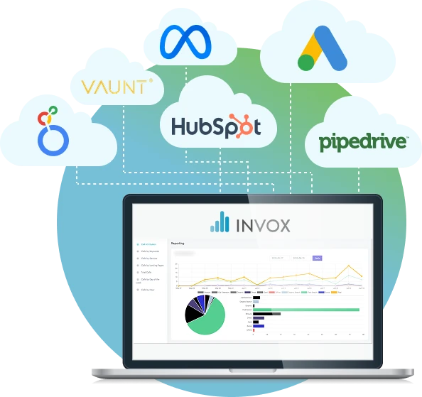 INVOX Call Tracking Software se integrează ușor cu majoritatea platformelor CRM și de analiză, inclusiv Google Ads, Facebook, Looker Studio, Pipedrive, HubSpot, Salesforce, Vaunt și multe altele.
